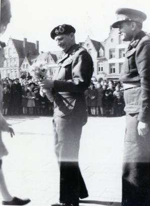 Op 10 maart 1945 kwam de Britse generaal Bernard Montgomery naar Brussel om eretekens uit te reiken aan leden van de Brigade Piron. Na de plechtigheid trok hij het land door en bracht bezoeken aan verschillende steden. Op 18 maart werd hij in Diksmuide ontvangen door het stadsbestuur en de toenmalige town-major van het bevrijdende Canadese leger. Montgomery was er al eerder geweest, begin september 1944, toen hij zijn hoofdkwartier tijdelijk in Diksmuide vestigde.