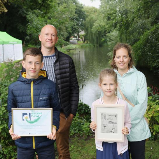De eerste Groen Pluim ging naar Mooimakersfamilie Vanrobaeys-Vandevyvere voor hun inspanningen om regelmatig samen zwerfvuil te ruimen. Hun confronterende ‘buit’ zetten ze op sociale media in de hoop dat mensen minder zwerfvuil zullen wegwerpen.